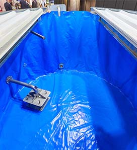 50 м³ құрама тік болат резервуардың құрамдас бөліктері паллеттерге герметикалық түрде оралған. Бұл ықшам пішінде бөлшектерді орнату орнына кез келген көлік түрімен жеткізуге болады. Бұл тасымалдау шығындарын азайтады және мүмкін етедіжеткізу жету қиын жерлерде өрт сөндіру цистерналары.
